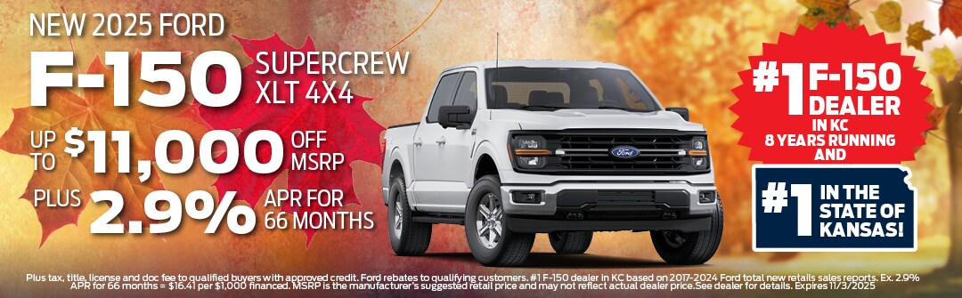 The way we sell new vehicles is VERY different than you will find anywhere else. Our NO HASSLE, $50 over the factory invoice pricing has been saving Ford buyers THOUSANDS of dollars for 44 years. We are the Number 1 F-150 Dealer in the Kansas City area for the last 8 years and also the Number 1 F-150 Dealer in the State of Kansas 4 years.