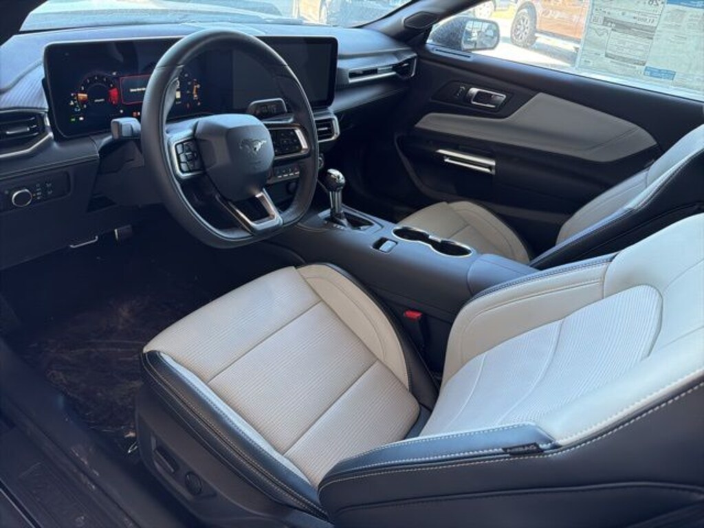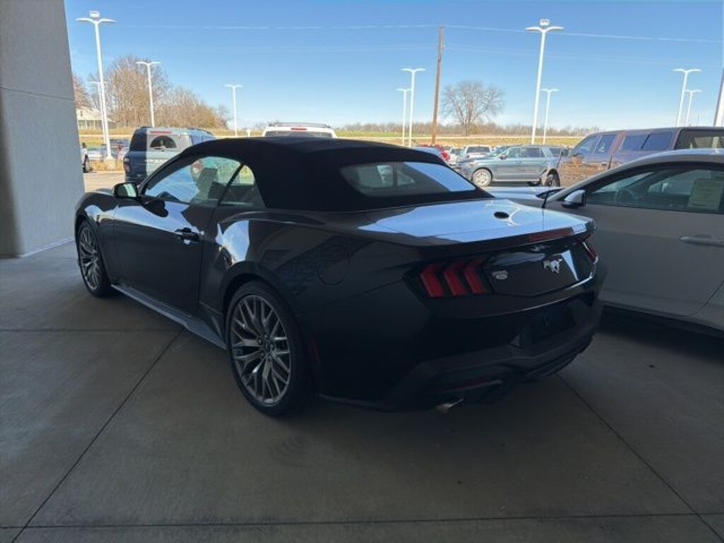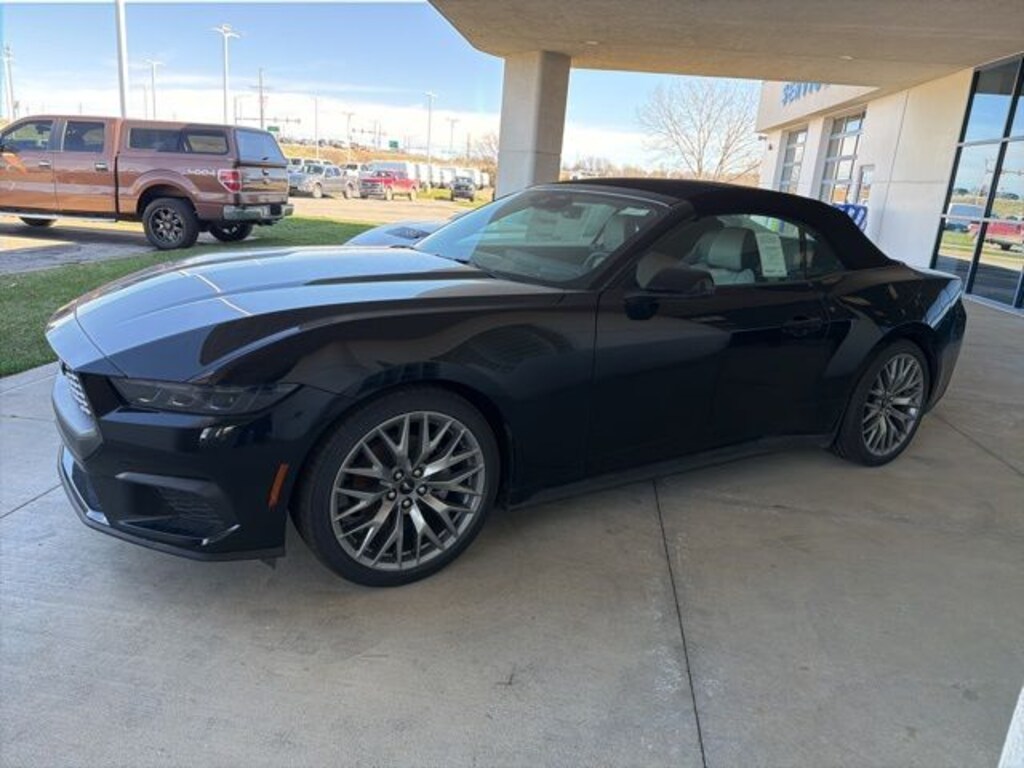 Shadow Black 2026 Ford Mustang EcoBoost Convertible Premium RWD 10-Speed Automatic EcoBoost 2.3L I4 GTDi DOHC Turbocharged VCT ABS brakes, Adaptive Cruise Control with Stop and Go, Alloy wheels, Aluminum Foot Pedals, AM/FM Stereo, Compass, Driver Seat Memory with 3 Settings, Electronic Stability Control, Equipment Group 201A High Package, Ford Co-Pilot360 Assist+, Front dual zone A/C, Heated front seats, Illuminated entry, Lane-Keeping System with Lane Keeping Aid, Leather-Trimmed Bucket Seats with Color Accents, Low tire pressure warning, Magnesium Framed Panoramic Curved Display, One-Year Connected Navigation, Perimeter Alarm, Pre-Collision Assist with Automatic Emergency Braking, Remote keyless entry, SYNC 4, Traction control, Wheels: 18" x 8" Painted Shadow Silver Cast Aluminum.